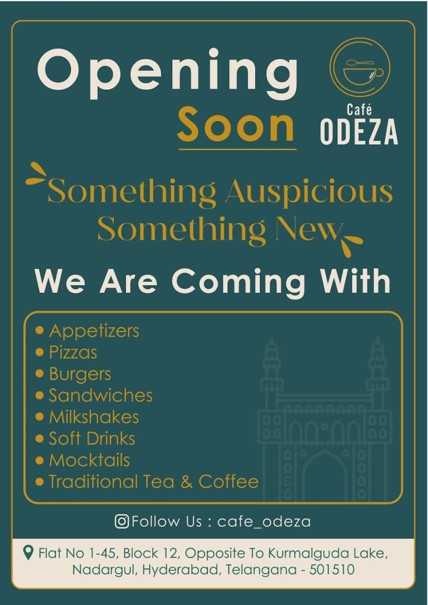 Welcome to Cafe ODEZA, a hidden gem nestled in Nadargul, Telangana, right across the serene Kurmalguda Lake. This delightful café offers a diverse menu, perfect for both casual snacking and satisfying dinners.